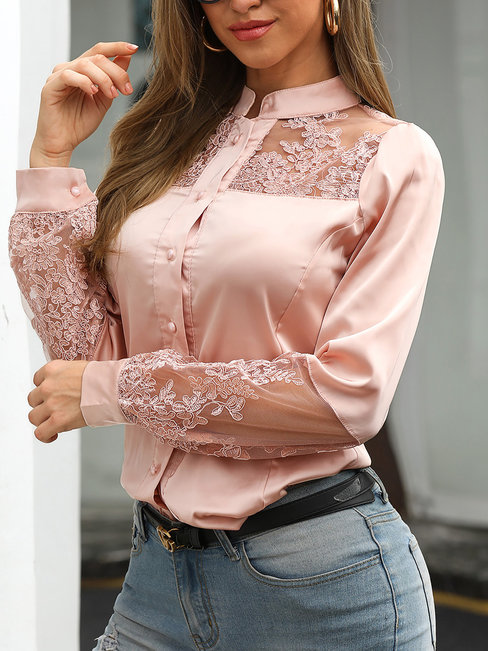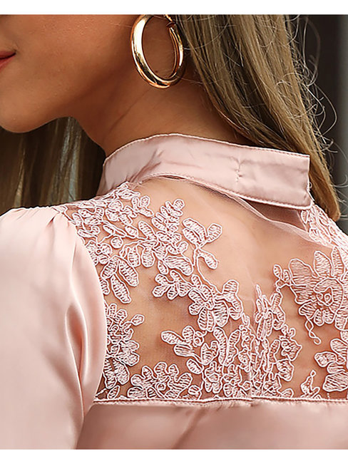 - Pink Stand Collar Standard Slim Date Night Polyester Blouse (Style V300523)