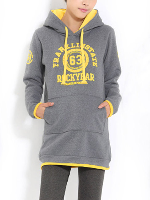 - Grey Standard Casual Letter Cotton Blends Pockets Hoodie (Style V100837)