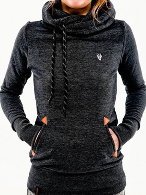 - Dark Gull Gray Standard Casual Plain Cotton Pockets Sweatshirts (Style V100729)