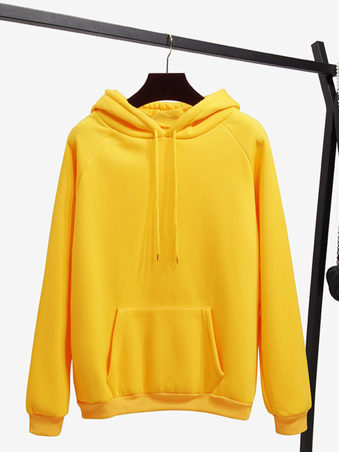 Yellow Standard Casual Plain Polyester Pockets Sweatshirts (Style V100645)