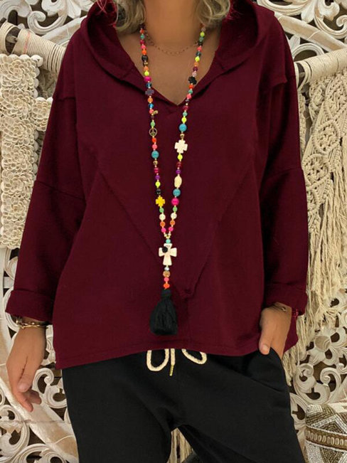 2. Hooded Straight Patchwork Polyester Patchwork Hoodie (Style V100732)