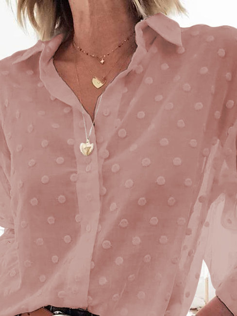 - Pink Standard Date Night Plain Polyester See-Through Blouse (Style V300617)