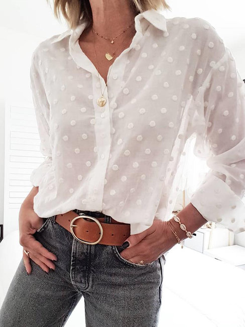 - White Standard Date Night Plain Polyester See-Through Blouse (Style V300617)