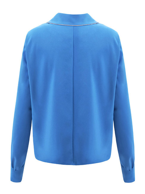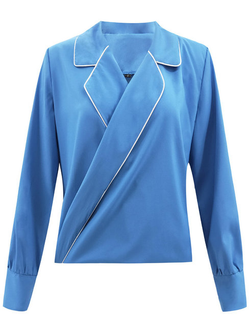 This blouse looks elegant and very chic! The folding collar and the V neck design's very fine made. The tailorship's great! Will buy again!