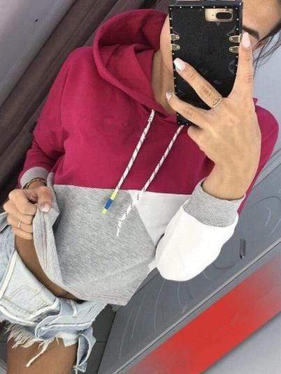 Grey Standard Loose Casual Patchwork Polyester Sweatshirts (Style V100599)