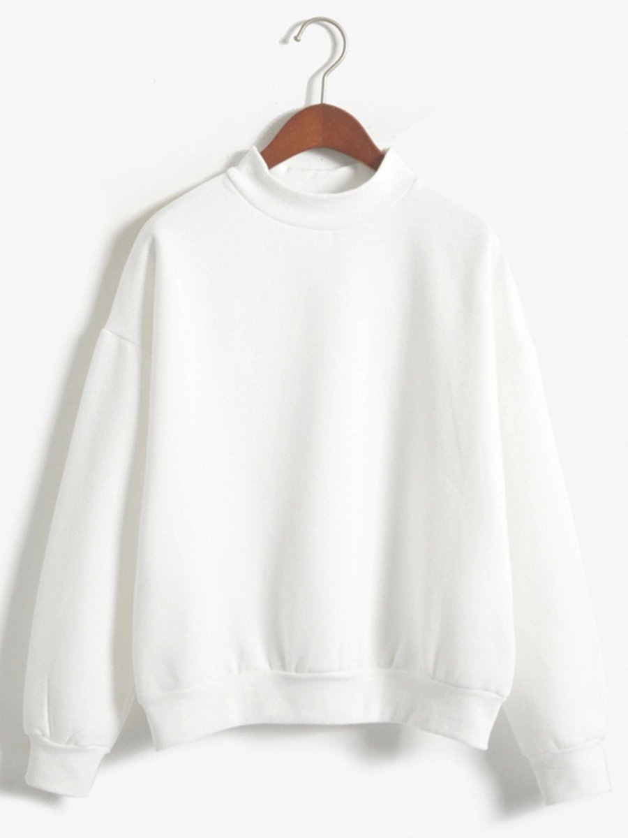 - White Standard Loose Casual Plain Polyester Sweatshirts (Style V100757)