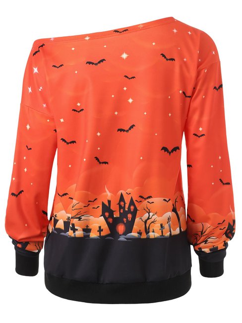 Orange Standard Loose Casual Star Polyester Sweatshirts (Style V100560)