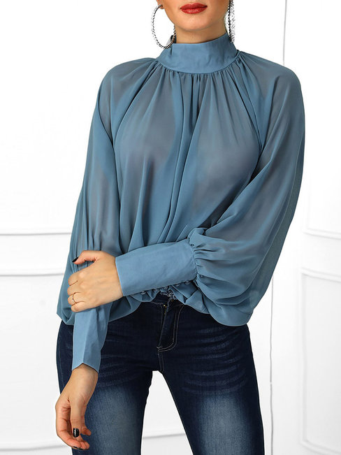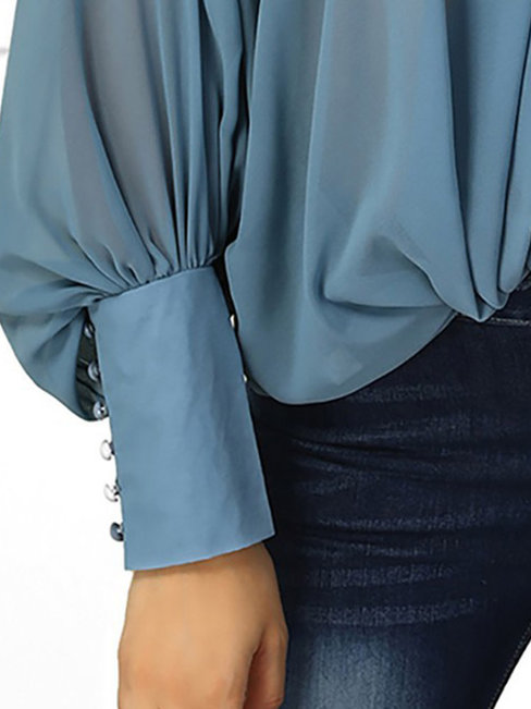 - Gray Blue Standard Loose Elegant Plain Polyester Blouse (Style V201403)
