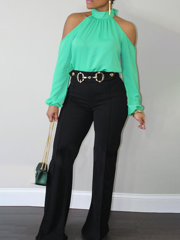 - Green Standard Loose Elegant Plain Strappy Blouse (Style V300958)