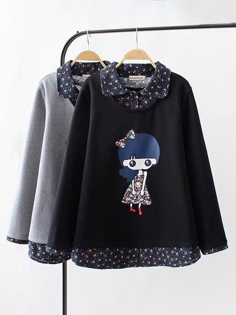 The cartoon girl pattern's very cute! And the mini floral pattern looks lovely. Basic design's a casual style, love it very much!