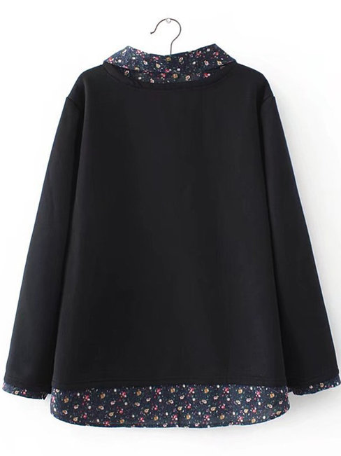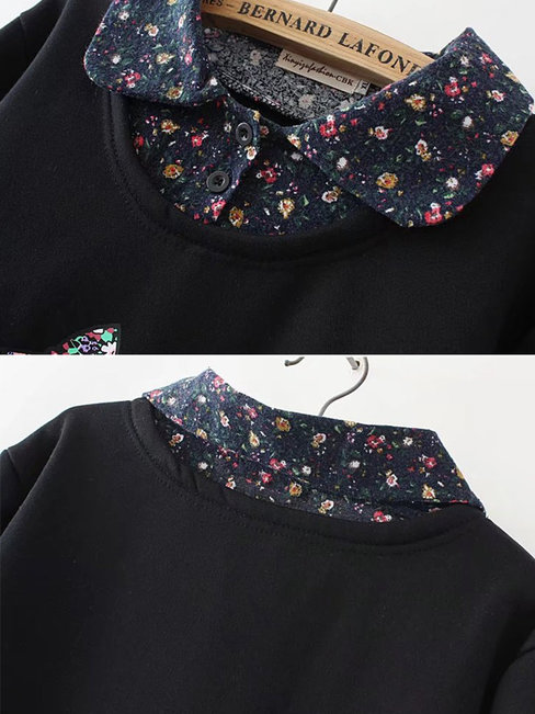 - Navy Blue Standard Loose Floral Cotton Pattern Sweatshirts (Style V100647)