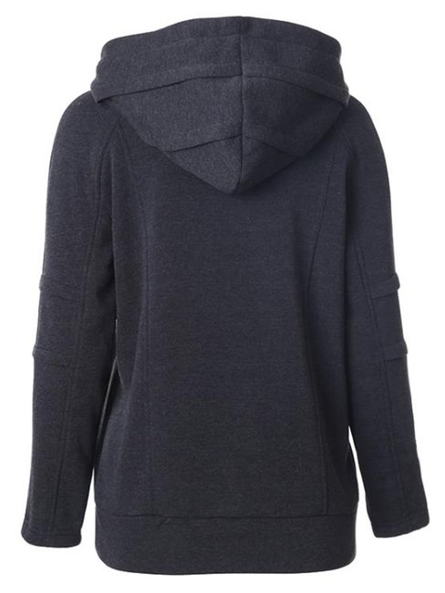 - Dark Blue Standard Loose Plain Polyester Pockets Hoodie (Style V100580)