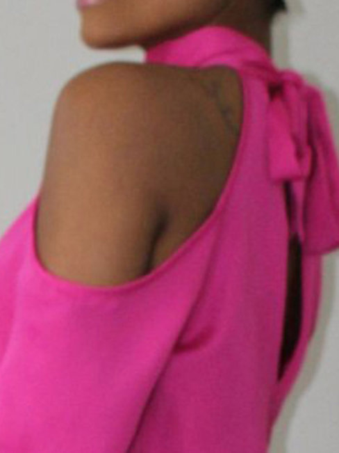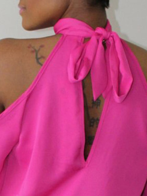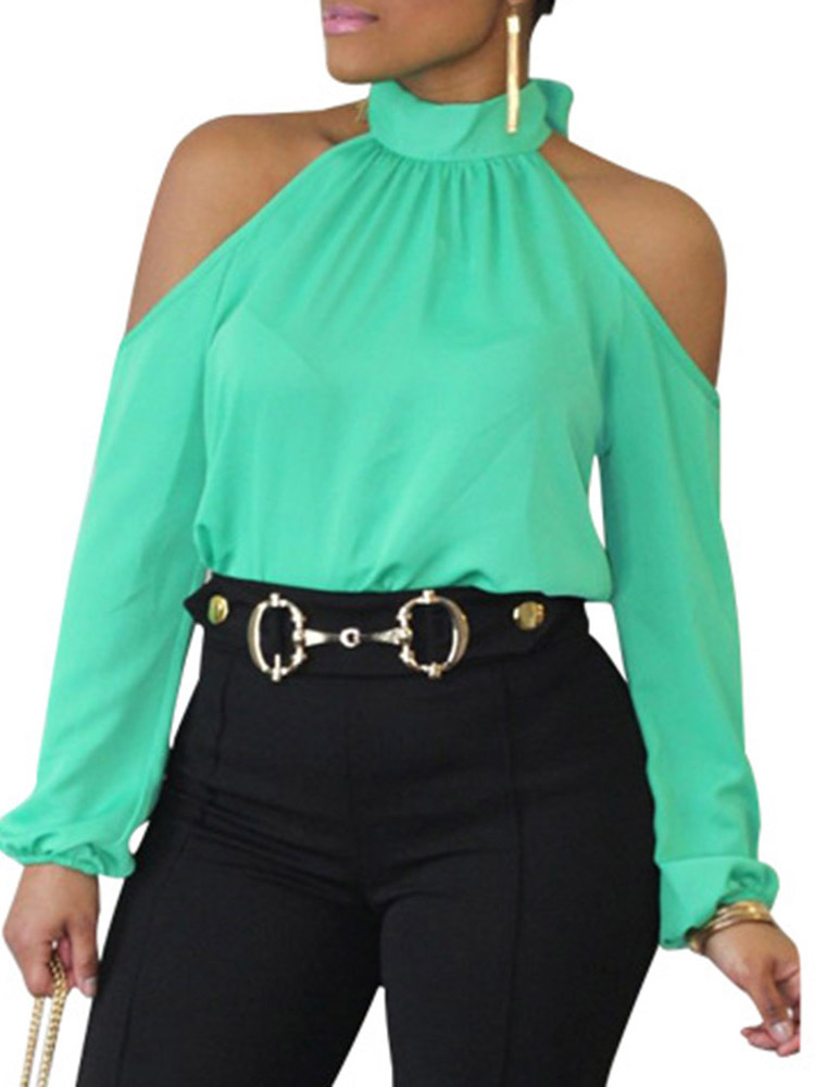 Green Standard Loose Sexy Plain Polyester Blouse (Style V201318)