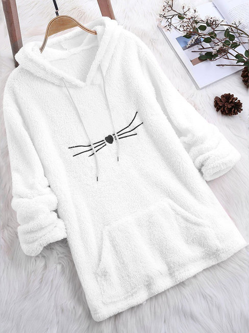 White Standard Slim Casual Plain Polyester Sweatshirts (Style V100693)