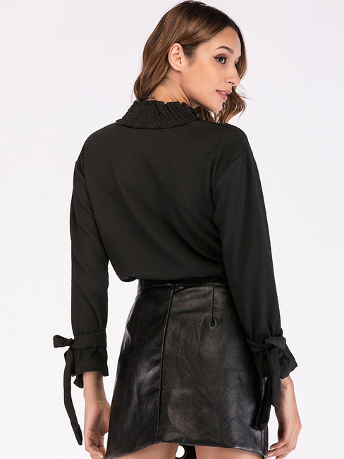 - Black Standard Slim Date Night Plain Cotton Blouse (Style V200951)