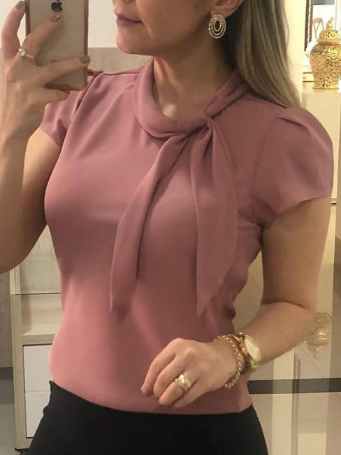 - Pink Standard Slim Elegant Plain Asymmetrical Blouse (Style V300385)