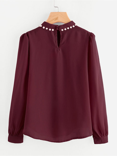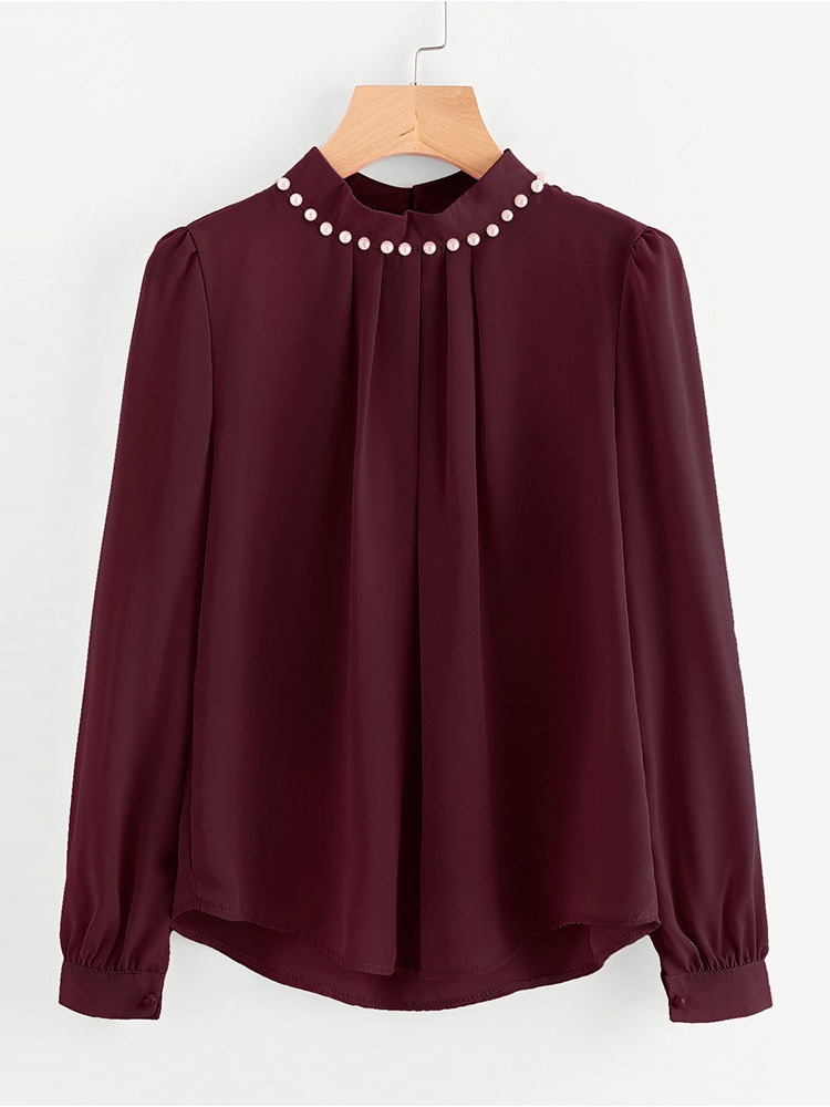 - Burgundy Standard Slim Office Plain Beaded Blouse (Style V200717)