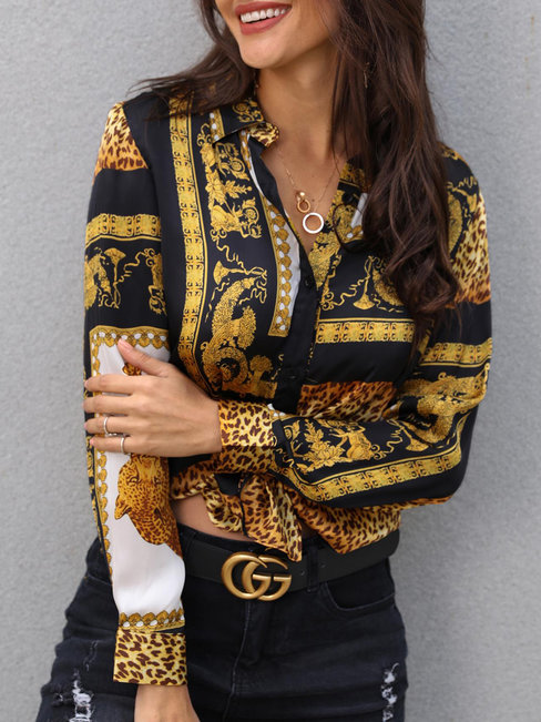 - Dark Yellow Standard Slim Party Polyester Button Blouse (Style V300019)