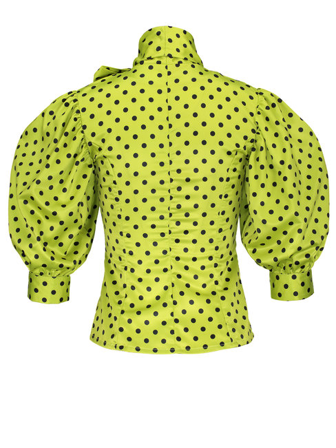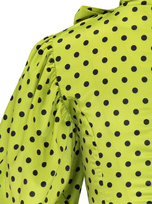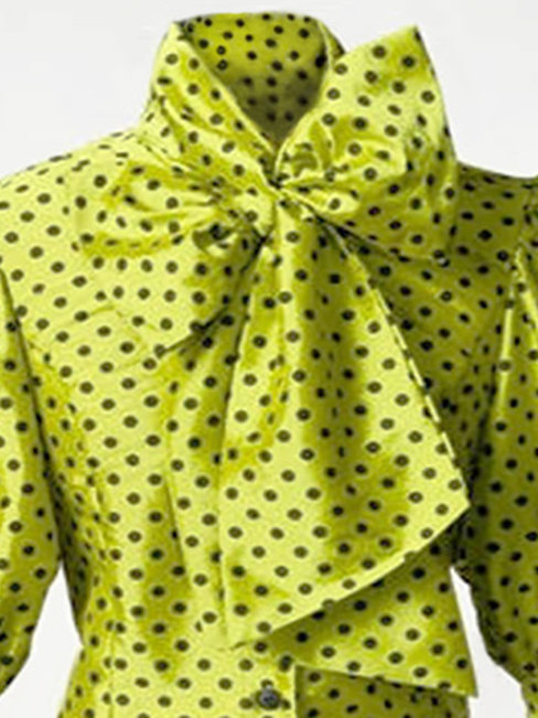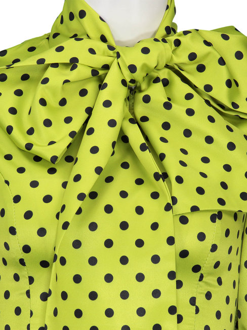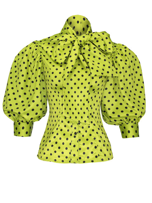 - Grass Green Standard Slim Polka Dot Bow Blouse (Style V200463)