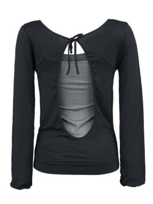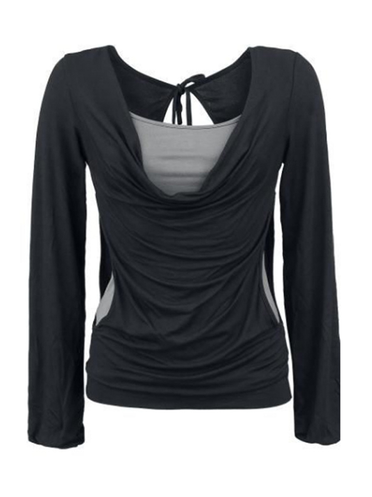 Black Standard Slim Sweet Plain Polyester T Shirt (Style V200880)