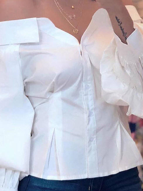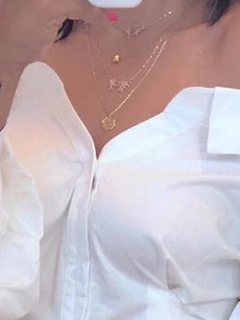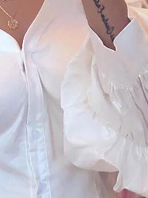 - White Standard Slim Western Polyester Patchwork Blouse (Style V201544)