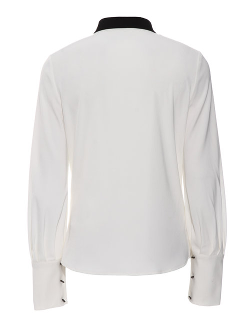 - White Standard Slim Woven Fabric Patchwork Blouse (Style V200327)