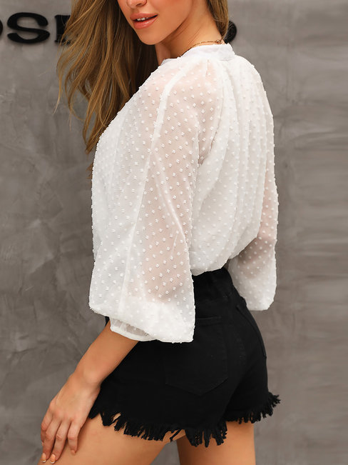 - White Standard Straight Beach Plain Dacron Blouse (Style V300907)