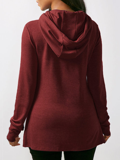 - Red Standard Straight Casual Polyester Ruffle Hoodie (Style V100814)