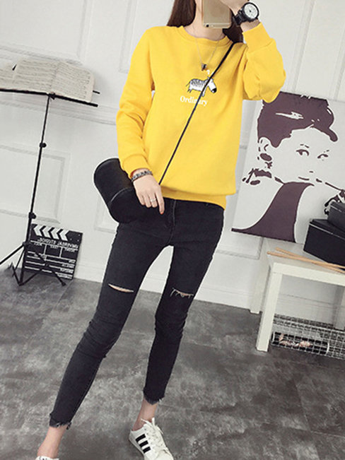 Yellow Standard Straight Cute Letter Polyester Sweatshirts (Style V100793)