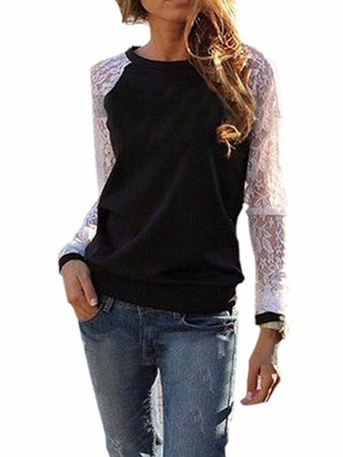 - Black Standard Straight Cute Patchwork Cotton Sweatshirts (Style V100736)