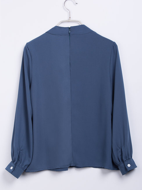 - Blue Standard Straight Office Plain Polyester Blouse (Style V201622)