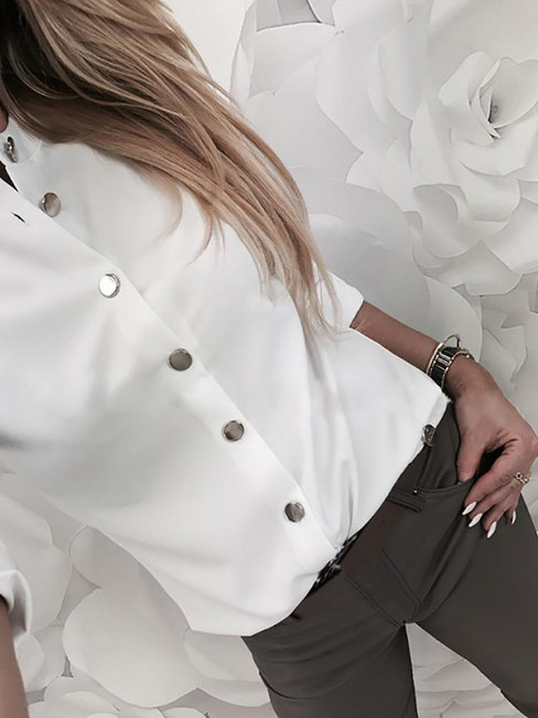 White Standard Straight Plain Dacron Button Blouse (Style V300334)