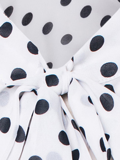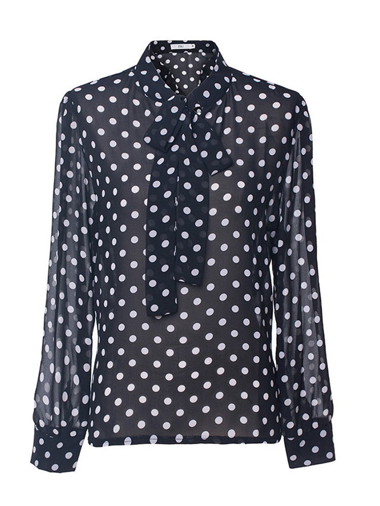 It's a classic blouse, with polka dots and bow! Design's simple and material's very comfortable. Three colors look fine and I selected the white one.
