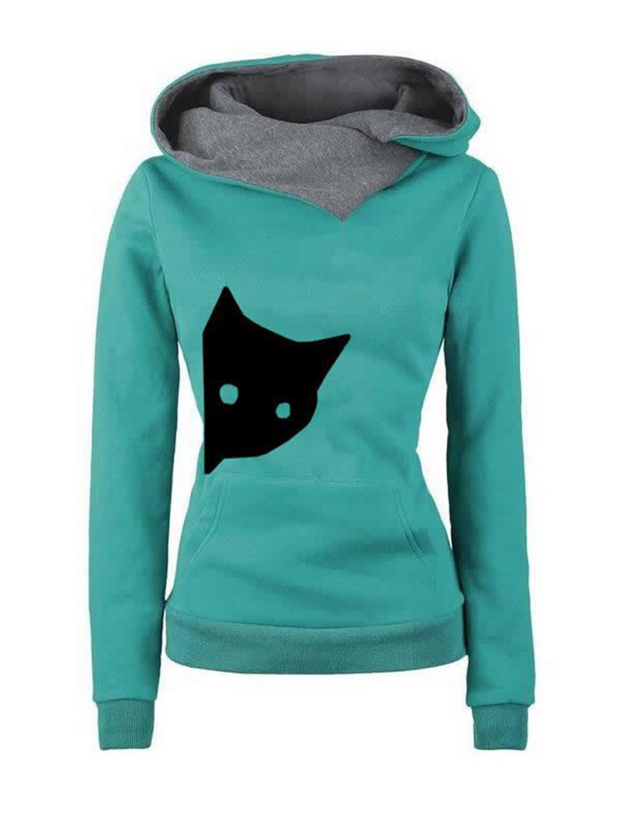 Green Straight Cute Animal Polyester Pattern Hoodie (Style V100776)