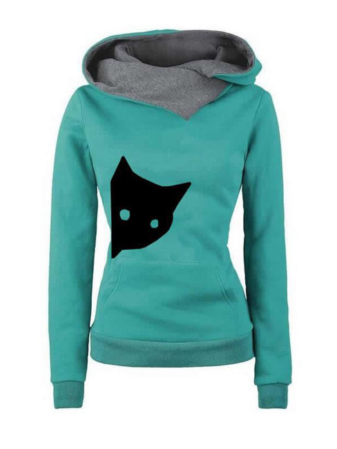 - Green Straight Cute Animal Polyester Pattern Hoodie (Style V100776)