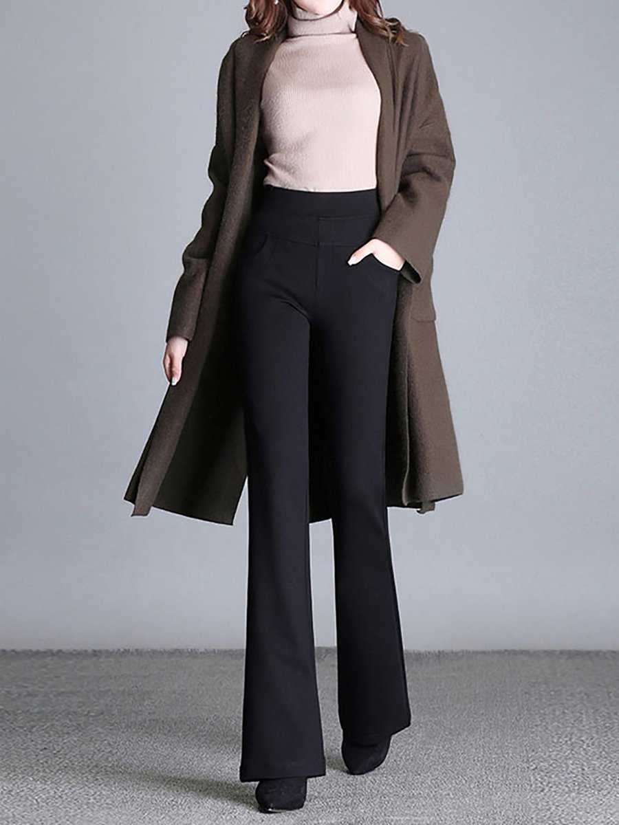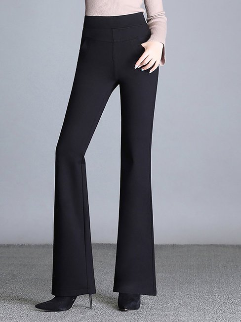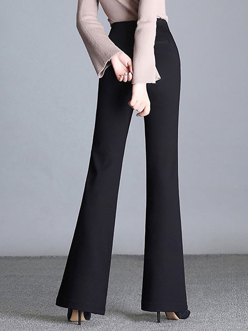 - Black Straight Office Pockets Polyester Plain Pants (Style V102289)
