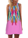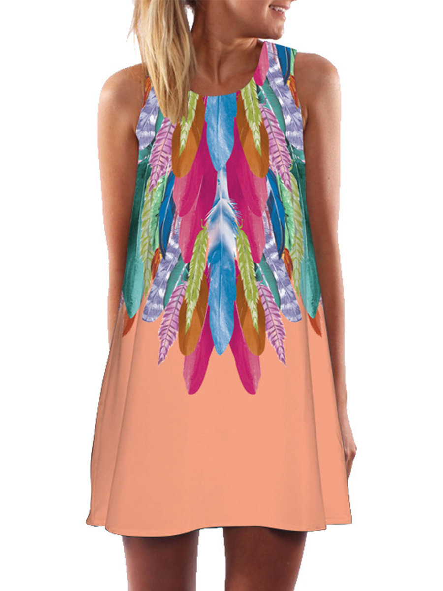 Coral Straight Round Neck Feather Pattern Polyester Casual Dresses (Style V100192)