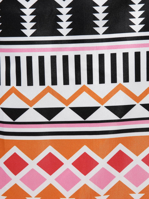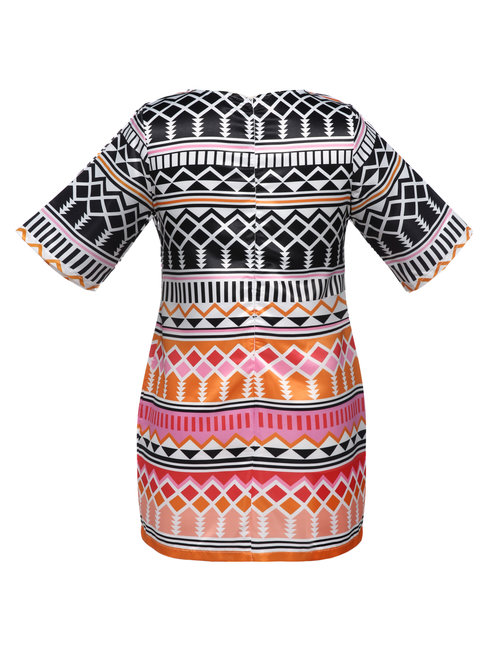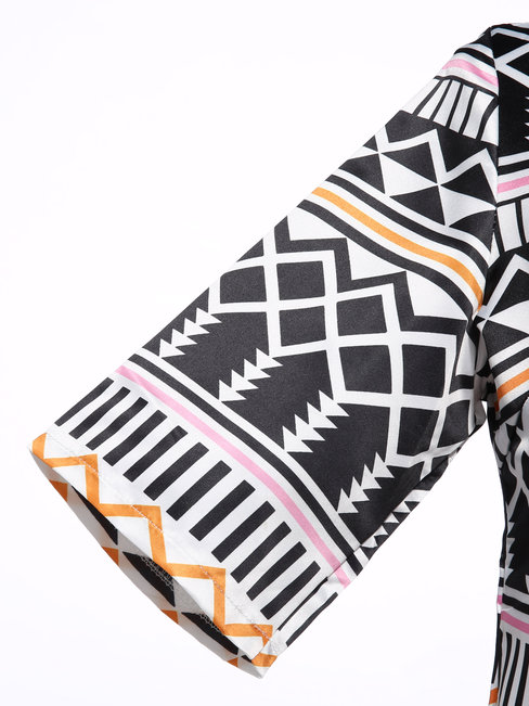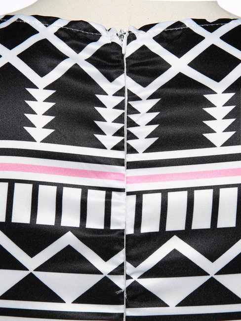- Black Straight Round Neck Geometric Print Polyester Knee Length Dresses (Style V200133)