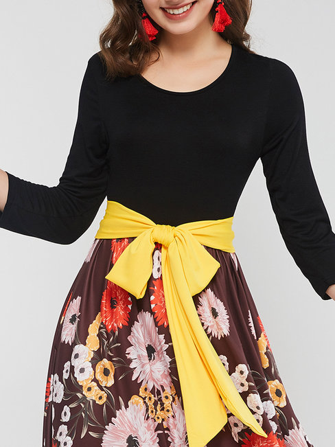 - Coffee Travel Look Expansion Round Neck Striped Patchwork Maxi Dresses (Style V201024)