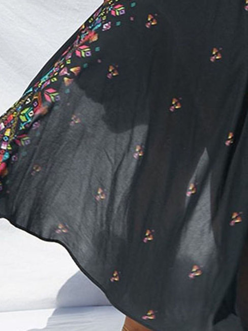 - White Travel Look Expansion V-neck Print Polyester Maxi Dresses (Style V201290)