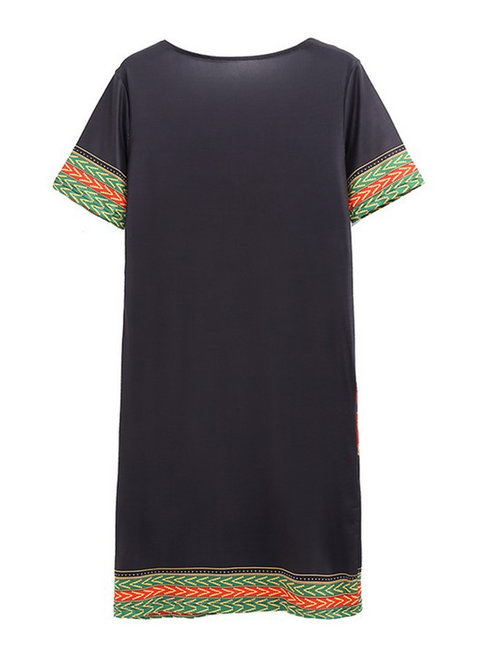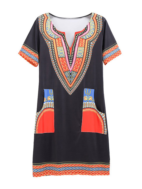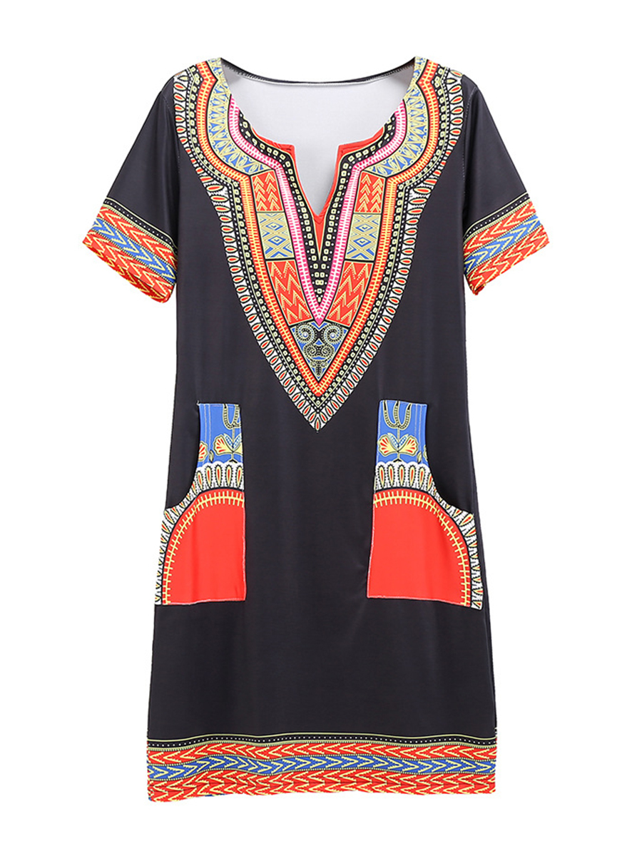 - Red Tribal Straight Patchwork Mini Dresses (Style V200362)