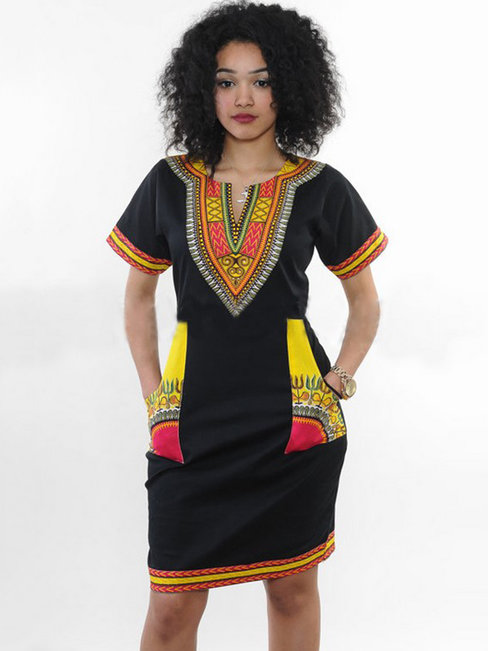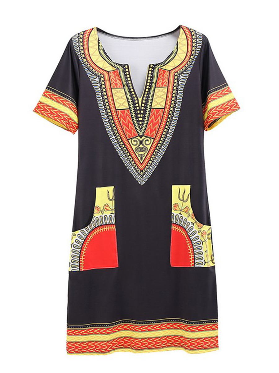 Yellow Tribal Straight Patchwork Mini Dresses (Style V200362)
