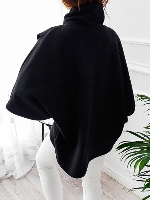 - Black Turtleneck Batwing Fashion Plain Polyester Sweatshirts (Style V100777)