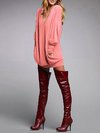 - Black V-neck Long Loose Casual Plain Sweatshirts (Style V100760)