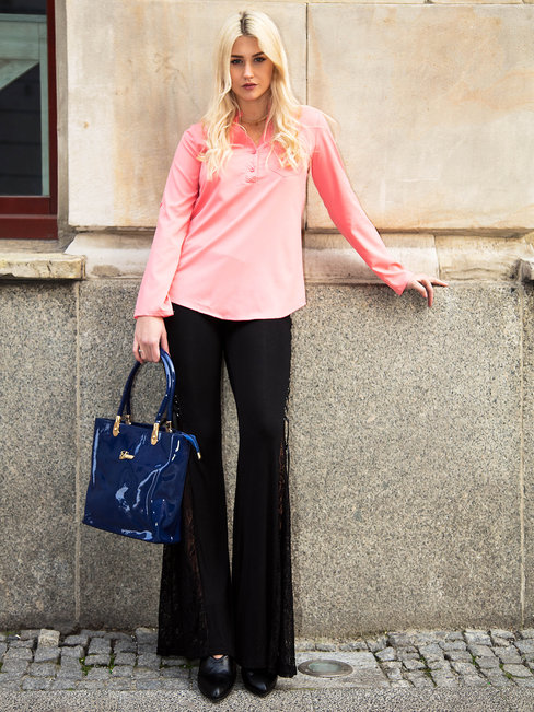 - Pink V-neck Loose Casual Plain Button T Shirt (Style V200796)
