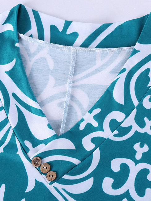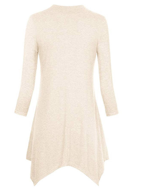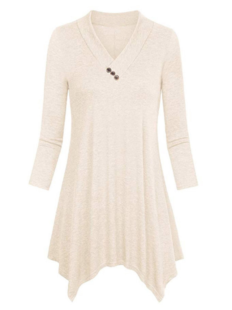 - Beige V-neck Midi Loose Casual Plain T Shirt (Style V201119)