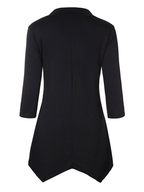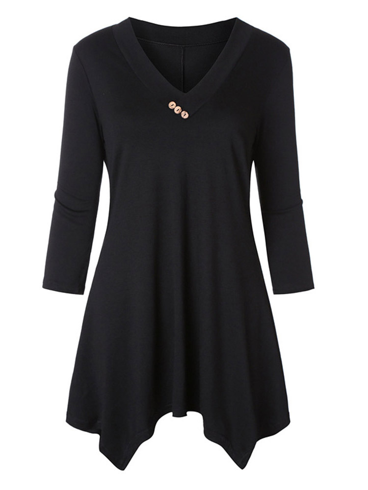 - Black V-neck Midi Loose Casual Plain T Shirt (Style V201119)