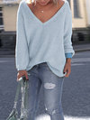 The light blue color of this sweater is very beautiful! Its big V neck design's looking stylish and the fabric's light and breathable.