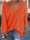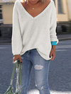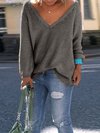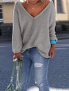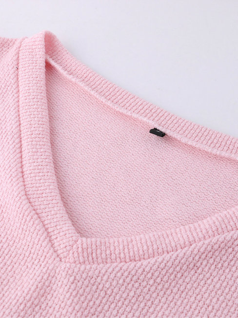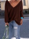 Beige V-neck Standard Loose Casual Plain Sweater (Style V100987)