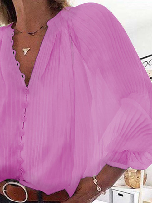 - Purple V-neck Standard Loose Plain Polyester Blouse (Style V300488)